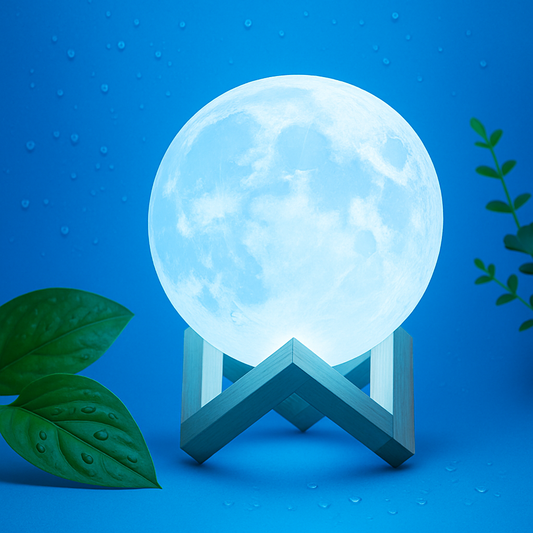 3D Moon Lamp 15cm with Wooden Stand – 7 Color Changing LED Touch